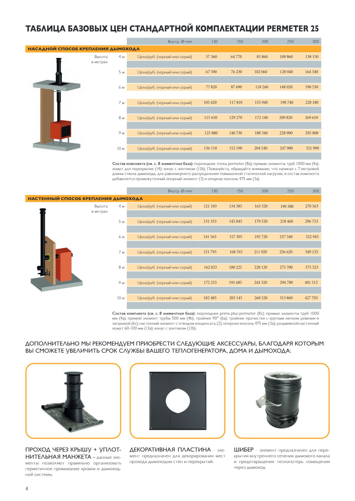 Дымоходы серии Permeter – это стальные двухконтурные утепленные системы бытового назначения для установки в индивидуальных и многоквартирных жилых домах, банях, общественных и производственных зданиях. Они предназначены для отвода продуктов сгорания от каминов, печей и котлов, использующих в качестве топлива дрова, брикеты, пеллеты или природный газ. Рабочая температура эксплуатации дымоходных систем серии Permeter составляет 600°С.