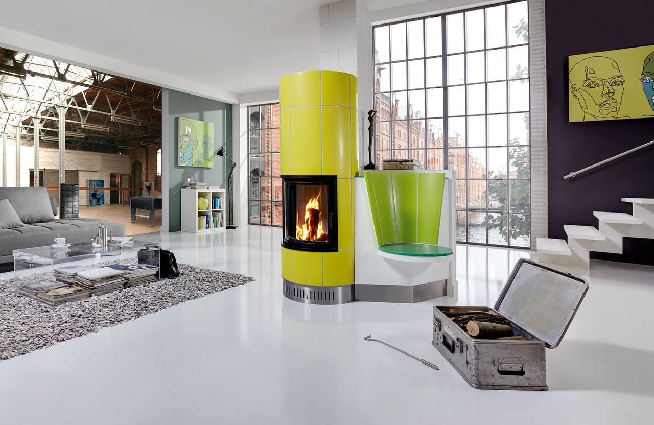 Каминные топки с полукруглым стеклом обеспечивают панорамный вид на пламя.