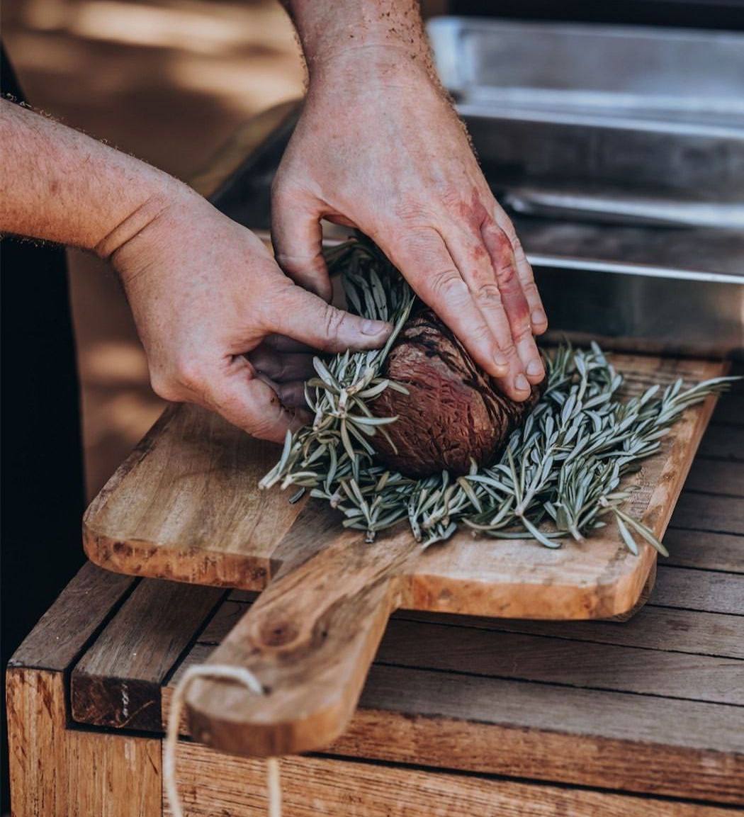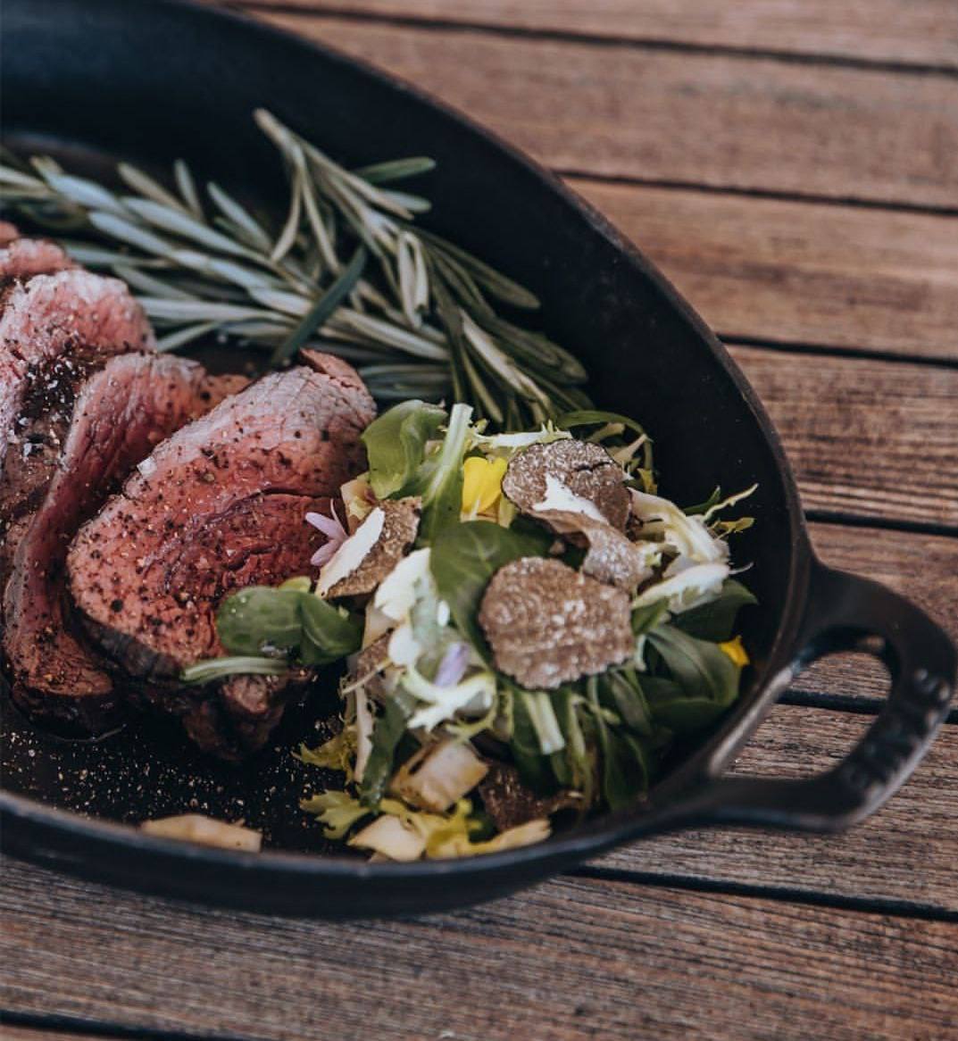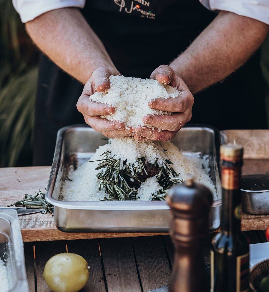 Говяжье филе, запечённое с розмарином в крупной морской соли, смоченной лимонным соком.