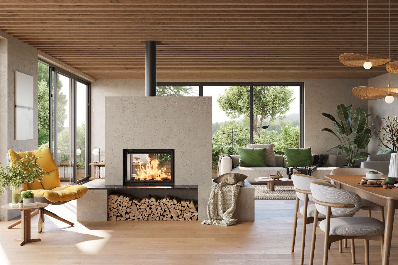 , зонирующим пространство. Кстати, эта топка прекрасно подходит для каминов в классическом стиле благодаря своим пропорциям.